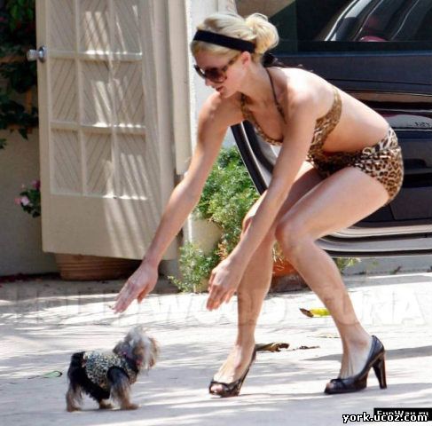 Безусловно, своей популярностью порода в немалой степени обязана своим «звездным» владельцам. Сильные мира сего, а также звезды кинематографа всегда были примером для подражания. А с ними и их йоркширские терьеры.Натали и Жан-Поль Бельмондо – хозяева сразу двух милых йоркширов: Майи и Калипсо. А познакомились будущие супруги именно благодаря знакомству их питомцев во время прогулки по бульвару! В основном, воспитанием маленьких йорков занимается сам Жан-Поль. Его часто можно встретить вместе с питомцами в специальном собачьем кафе, где подают вкусные галеты. А вот маленький йоркшир теннисной звезды Штеффи Граф сопровождает ее практически во всех турнирных поездках. Еще одна знаменитая теннисистка Оранта Санчес-Викарио бегает кроссы вместе со своим йоркширом. И, несмотря на то, что ноги у собачки гораздо короче, она не сходит с дистанции. Элегантная Одри Хепберн также выбрала для себя именно йоркширского терьера из всего множества собачьих пород. Среди современных голливудских «звезд» самой ярой поклонницей йоркширов считается Деми Мур — владелица нескольких собачек этой породы. Вслед за ней йорк появился и в особняке Бритни Спирс. Йорк стал счастливым талисманом для неоднократного победителя «Формулы-1» блистательного Михаэля Шумахера.